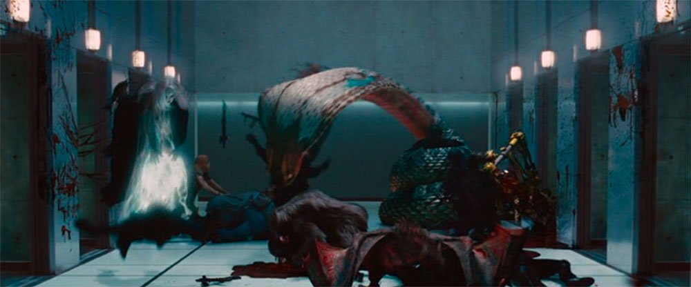 Mythology dressed in blood squibs. Without them, the ritual fails. And guess what happens then? Spoiler, it rhymes with “total extinction.” Five college students. The Whore, the Athlete, the Scholar, the Fool, and the Virgin.